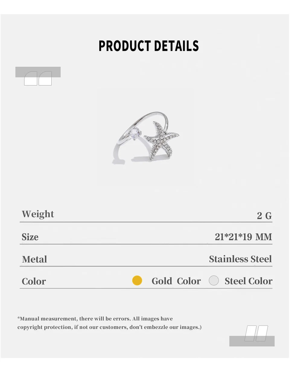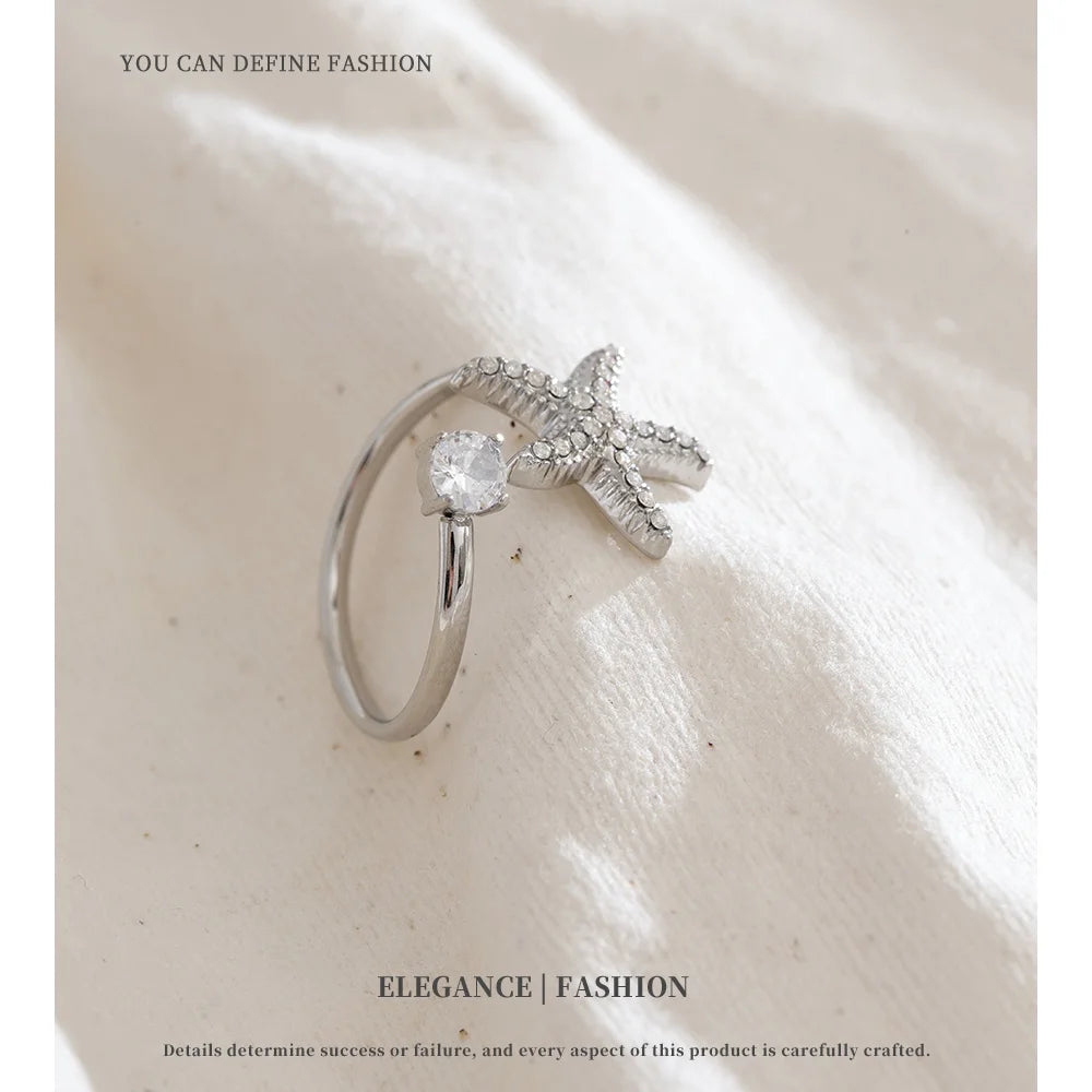 Minimal silver ring with a crystal starfish detail ✨ Perfect for summer and beach lovers.