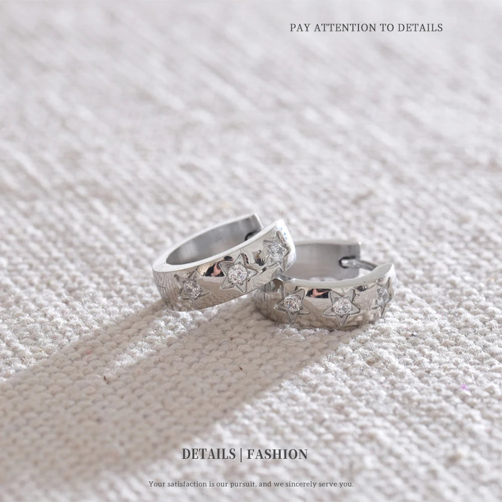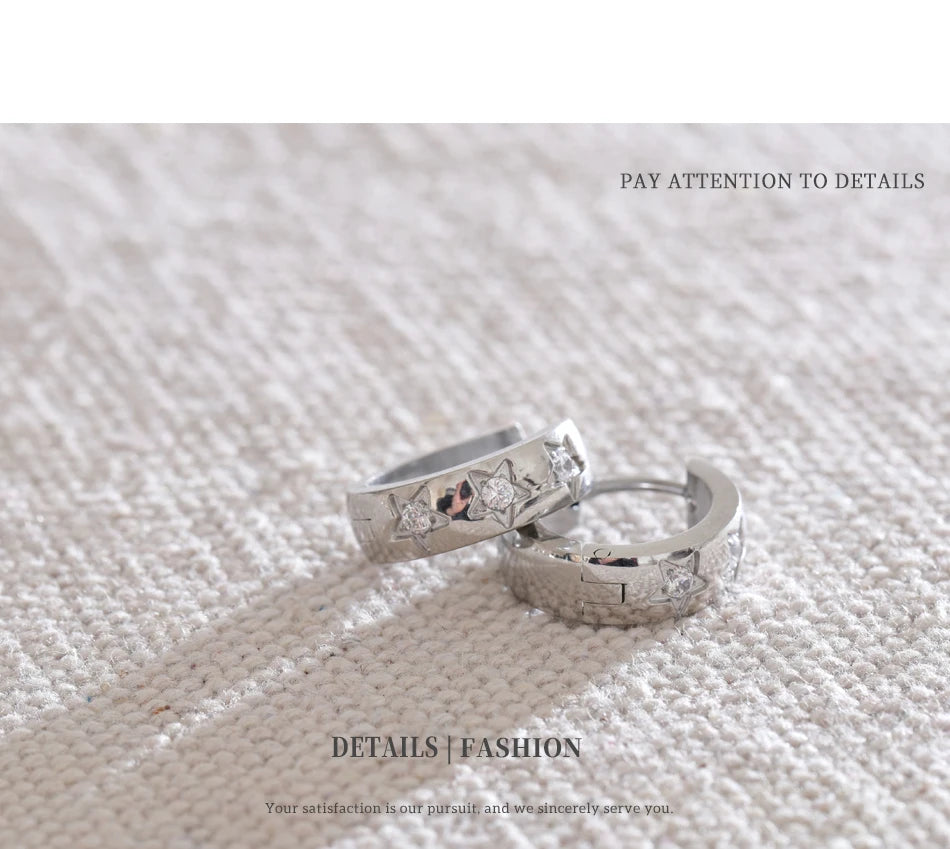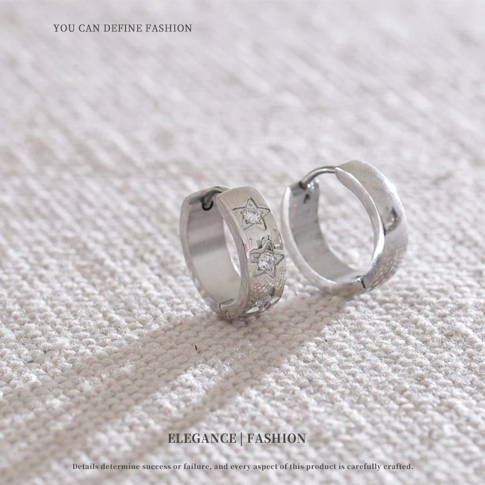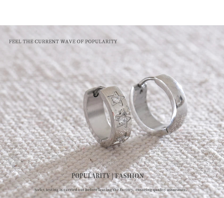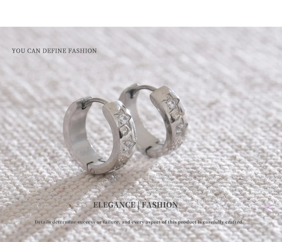 Bright, playful hoops adorned with tiny star-shaped accents. A perfect blend of minimal and trendy, they bring effortless sparkle to any outfit. Waterproof, tarnish-free, and lightweight for everyday magic.