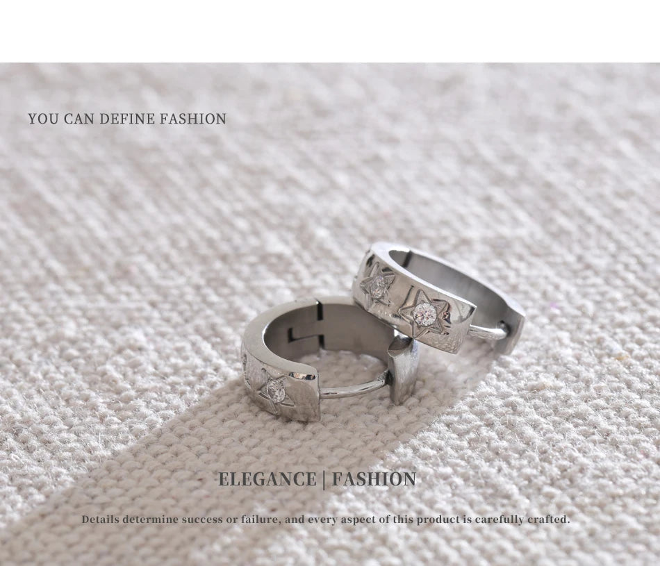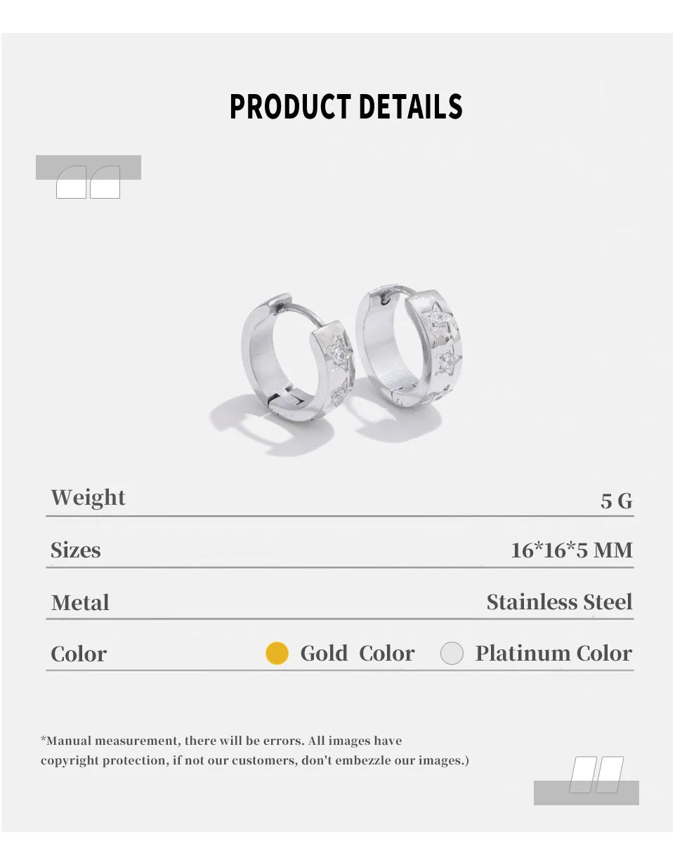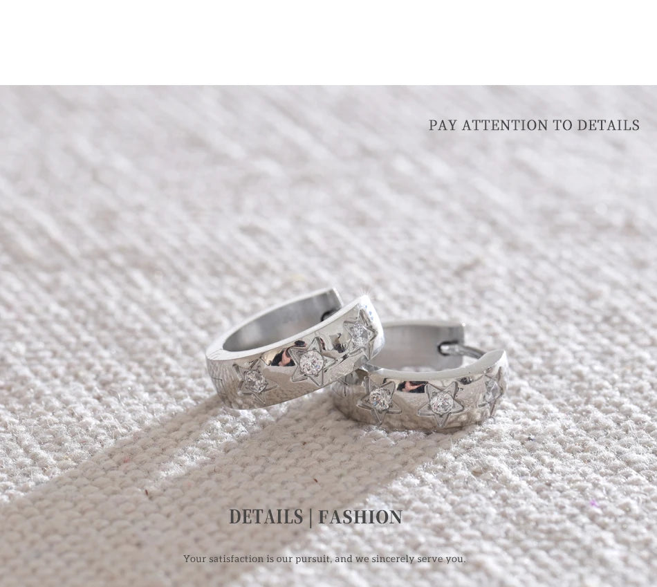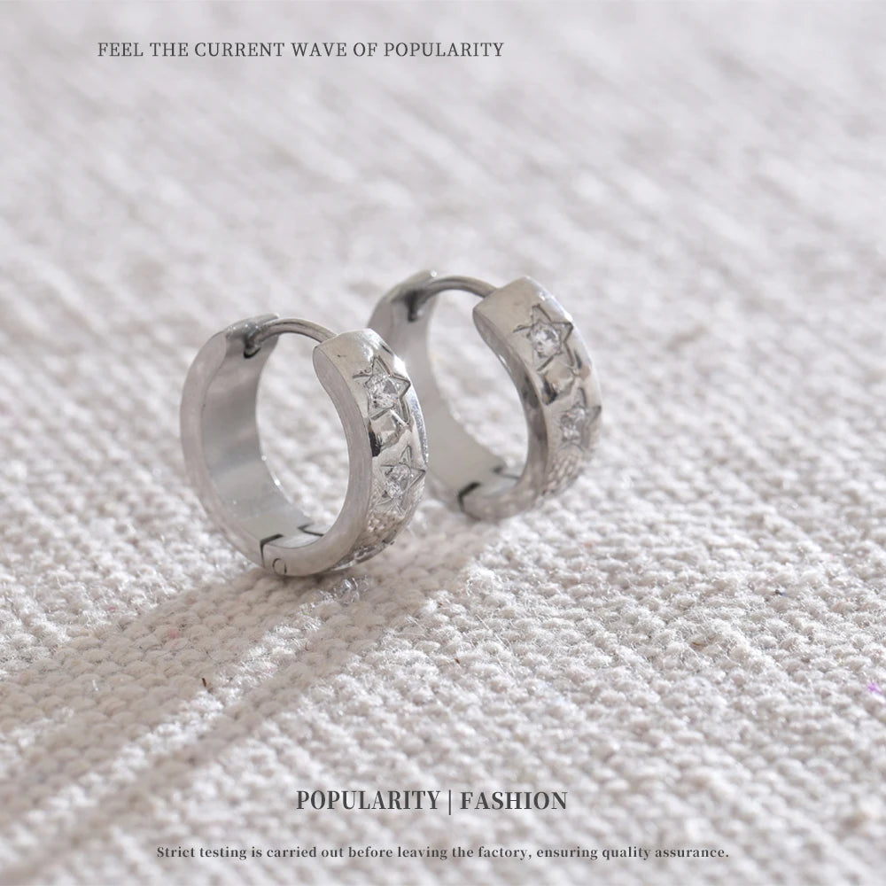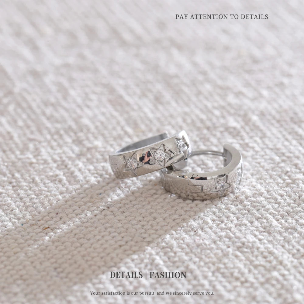 Bright, playful hoops adorned with tiny star-shaped accents. A perfect blend of minimal and trendy, they bring effortless sparkle to any outfit. Waterproof, tarnish-free, and lightweight for everyday magic.